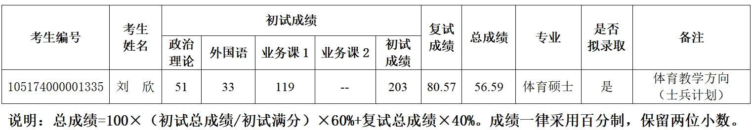 365电子娱乐官方网站体育学院2024年硕士研究生成绩及拟录取情况公示(递补录取)
