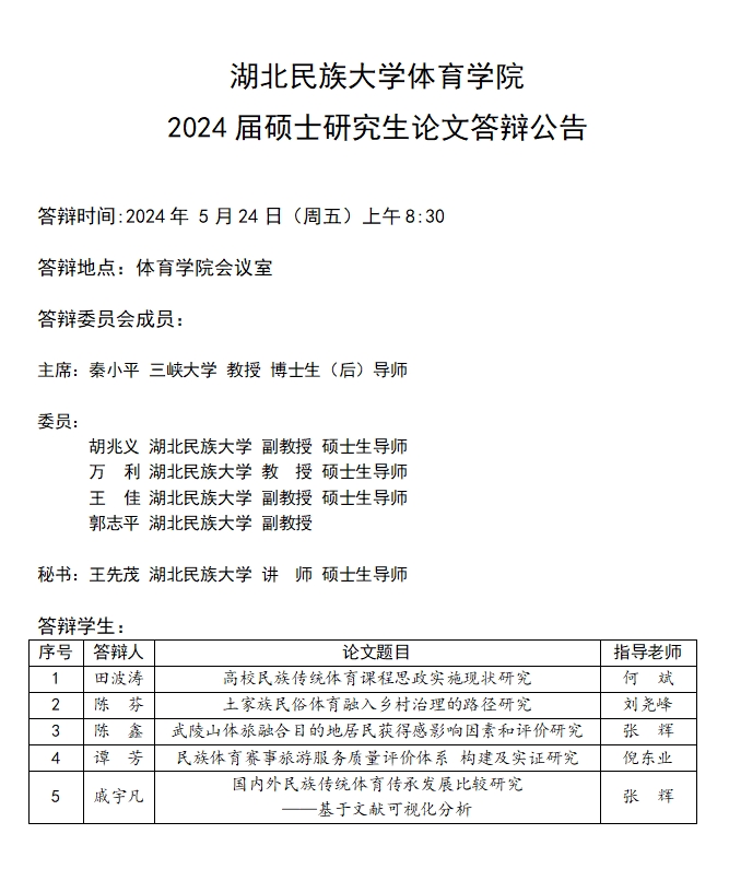 : 关于体育学院2024年体育硕士研究生指导教师上岗考核结果的公示