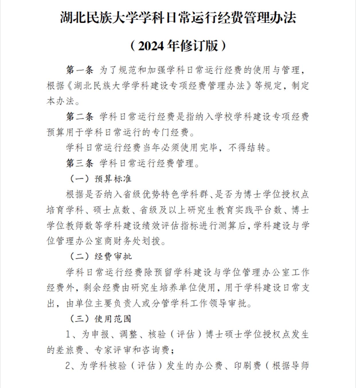 365电子娱乐官方网站学科日常运行经费管理办法(2024年修订版)
