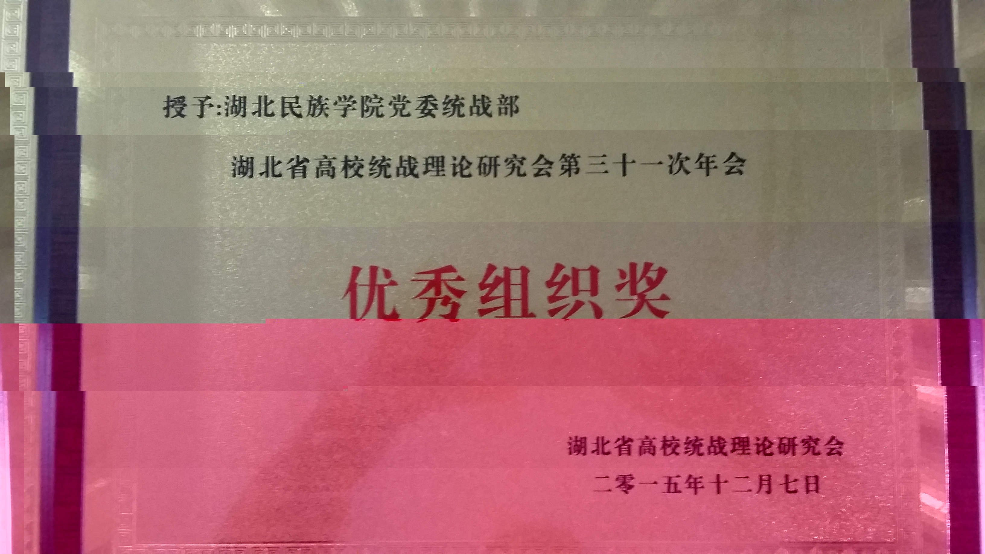 我校获湖北省高校统战理论研究会第30次、第31次年会“优秀组织奖”荣誉称号
