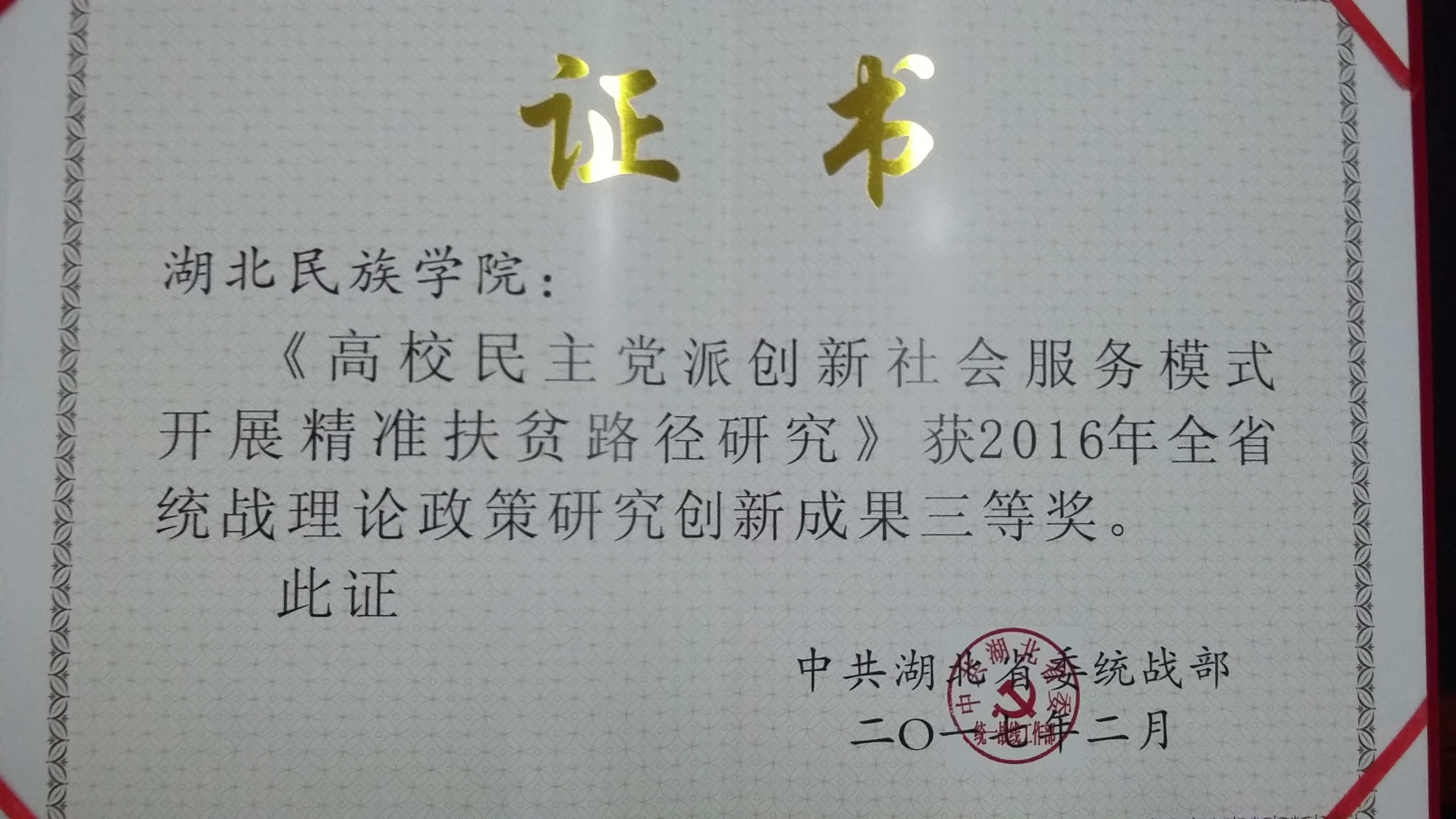 我校论文获省委统战部2016年全省统战理论政策研究创新成果三等奖