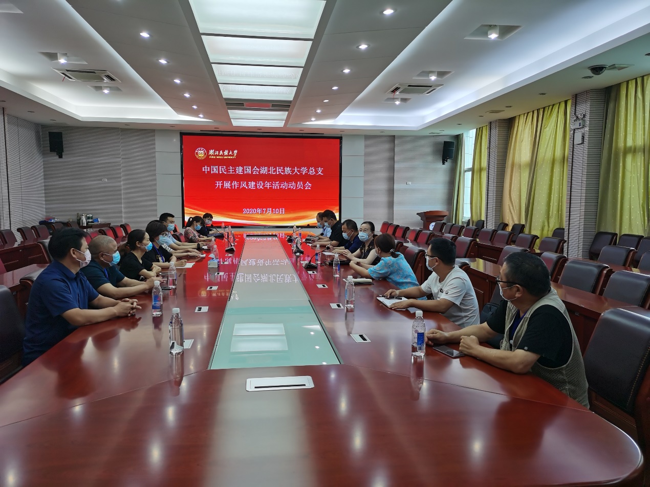 7月10日,民建民大总支主委钱楷主持召开了总支开展作风建设年活动动员会,各支部主委及骨干会员参加会议并交流学习体会。恩施州政协副主席、民建州委主委谭建军,统战部常务副部长丁莉、副部长向诗亚,民建州委组织科科长康银蔓、办公室副主任吕檬等应邀参加会议。