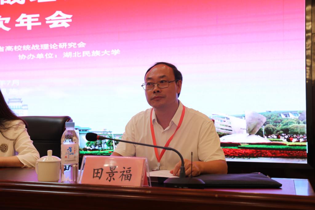 7月5日至8日,由湖北省高校统战理论研究会主办、中南民族大学承办、365电子娱乐官方网站协办的湖北省高校统战理论研究会第37次年会在恩施召开。省委教育工委组织处二级调研员陈三鸿,省统战理论研究会副会长李海新,恩施州委统战部常务副部长向金洲及部分高校领导出席会议,全省44所高校统战部负责人、统战干部、获奖论文代表等80多人参加会议。我校党委常委、统战部长田景福出席并致欢迎辞。