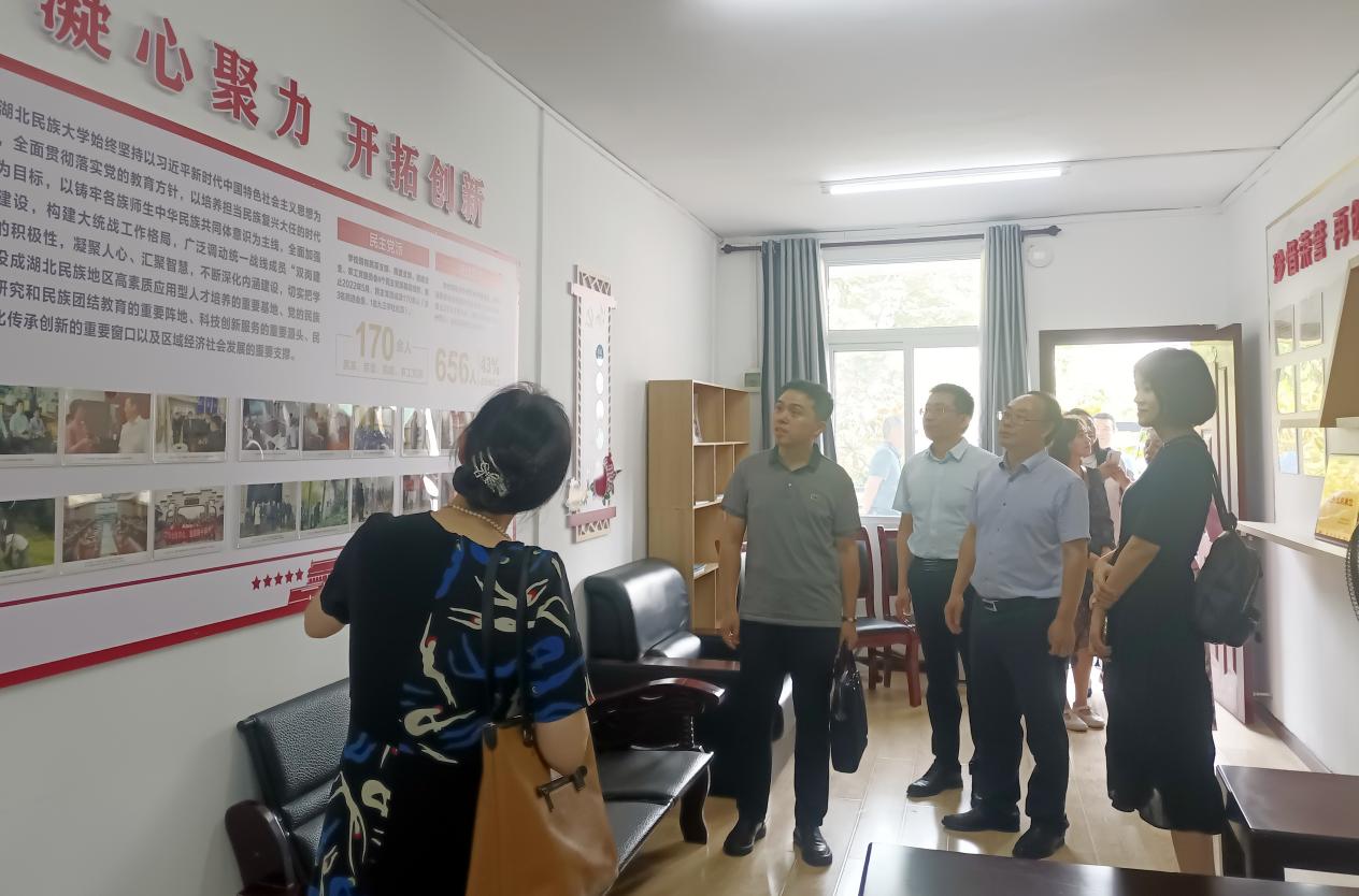 6月12日,民建湖北省委组织部部长张何率调研组一行来校,就民主党派自身建设、民建“会员之家”建设等工作开展调研。校党委常委、统战部长田景福,党委统战部常务副部长丁莉,民建湖北省委常委、民建恩施州委主委、州医保局局长张伟,民建恩施州委专职副主委谭晋陪同调研。民建湖北省委办公室副主任刘紫丹、办公室一级主任科员杨眉、民建省委组织部三级主任科员赵媛媛参加调研。