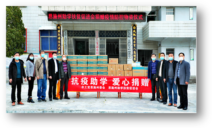 我校各民主党派和无党派人士积极响应国家号召,多渠道筹措救灾物资和进行爱心捐款。学校留联会发挥平台优势,多渠道联系捐赠恩施物资。恩施州助学扶贫促进会联合农工党恩施州委会开展了“抗疫助学·爱心捐赠”系列慈善捐赠活动,我校教师唐由凯、李玉山等16名农工党党员积极参加,响应号召捐款献爱心、群策群力落实防疫物资,并协助将防疫物资送到7所学校。