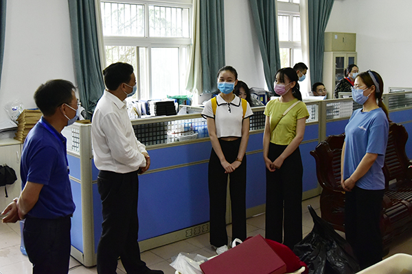 6月22日,我校首批毕业生返校的第二天,党委书记吴建清带领校办、学工处、校团委等单位负责人到各二级学院走访,看望慰问毕业生,了解各学院毕业生工作开展情况。