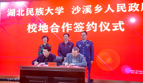 签约仪式上,365电子娱乐官方网站科研处副处长罗兴武和沙溪乡党委副书记、乡长杨海明代表双方签署协议,我校党委书记吴建清,利川市委常委、武装部长曾建辉,沙溪乡党委书记刘玲芳一起见证协议签署。
