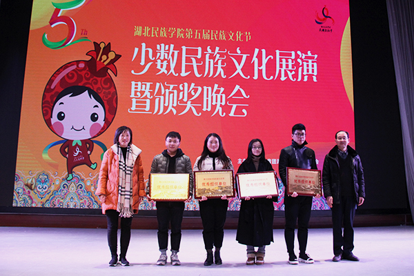 12月11日晚,我校第五届民族文化节少数民族文化展演暨颁奖晚会在音乐舞蹈学院演播厅成功举办。党委宣传部、党委统战部、学生工作处、校团委等单位负责人以及各二级学院团总支书记、辅导员出席颁奖典礼并观看晚会。