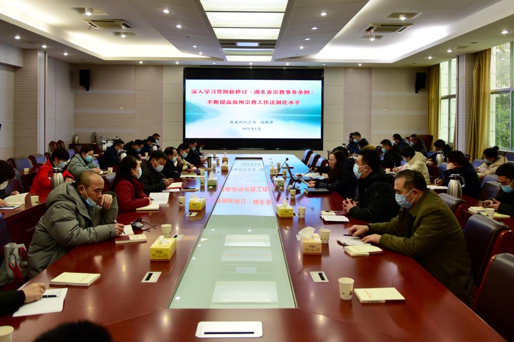 州委统战部副部长,州民宗委党组书记、主任向莉萍以《深入学习贯彻新修订<湖北省宗教事务条例> 不断提高宗教工作法制化水平》为题进行专题辅导。向莉萍向大家介绍了当前国际国内宗教基本情况,宣讲了中央对宗教工作的新部署新要求,解读了新修订的《湖北省宗教事务条例》,分析了高校抵御境外利用宗教渗透和防范校园传教面临的严峻形势,并就加强民族团结铸牢中华民族共同体意识,切实做好学校民族宗教工作提出了要求和建议。