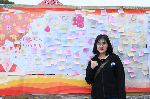 2023-03-21本网讯(记者 李美昊/文 见习记者 杨清密/图)3月11日,我院在大学生广场举办以“桃之夭夭,灼灼其华”为主题的女生节活动。活动分为“DIY石膏娃娃”“心想事成”“步步惊心”“知识闯关答题”四个环节。学生与心愿墙合影 “心想事成”环节,参与者在精美的便利贴上畅所欲言,写上祝福,表达参与者...
