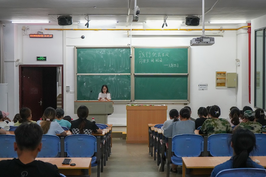 2023-09-06本网讯(记者 邵泉智)9月3日,我院在文传楼附101教室开展新学期学生干部工作会议暨军训工作动员大会。院团总支书记穆小雪,学生科老师谭芸、陈思义出席会议。院团总支、学生会全体成员参加会议。穆小雪就学生干部作风建设提出要求,她表示,要加强思想作风建设,坚定正确的政治立场;要加强学风建...