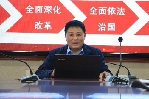 本网讯(记者 梅兰茜 杨荣/文 方迪/图)4月8日,我院在智慧教室一召开党的十九届五中全会精神宣讲暨党史学习教育大会,我校马克思主义学院院长徐铜柱教授受邀参加会议讲解十九届五中全会精神,我院院长罗翔宇教授主持会议,全体教师参加会议。