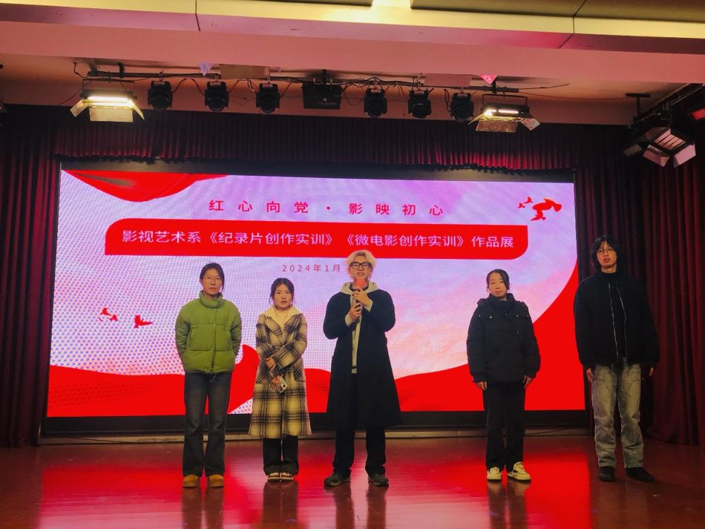本网讯(通讯员 邓纤姿)2024年1月5日,影视艺术系教工党支部在文传院附楼演播厅举行《纪录片创作实训》《微电影创作实训》专业课程优秀作品展活动。影视艺术系教工支部书记宋发枝老师,系主任林静老师,任课教师赵雅璇老师以及影视艺术系部分学生参加此次活动。
