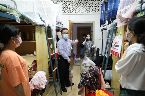 6月21日,我院迎来了第一批毕业生返校。结束了一天的报到、离校手续办理工作后,我院全领导、党员教师以及毕业班班主任下沉学生寝室,看望返校的同学们,关心返校学生服务保障工作,关爱学生们的心理动态,到第一线了解毕业生的实际困难,并与同学们亲切交流毕业去向、毕业感想。老师们勉励2020届毕业生在复杂环境中继续砥砺前行,在青春的征途中始终脚踏实地,在人生的道路上不忘仰望星空。