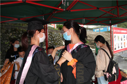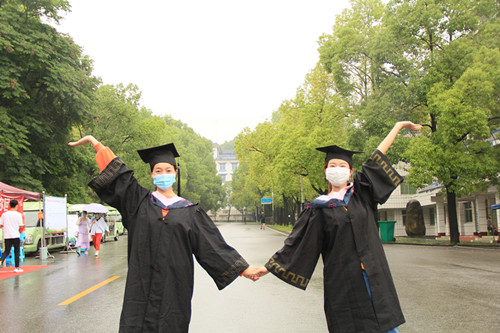 半年未见的老师、同学,再见已是毕业季,文瀚楼前,大家为对方擦拭离别的泪水,为彼此轻抚头上的帽穗。一张照片,将定格这场特殊又难忘的毕业礼。