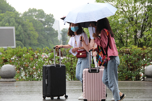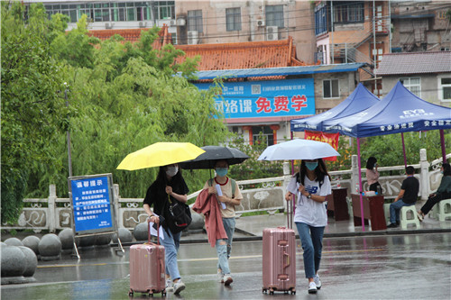 “文传学子,阔别已久,欢迎回家!”6月21日,文瀚楼前,一条红色横幅在雨中显得格外鲜艳。一个个2020届毕业生通过了严密的疫情防控检测,回到了久违的校园,我院迎来了今年的首批返校毕业生。