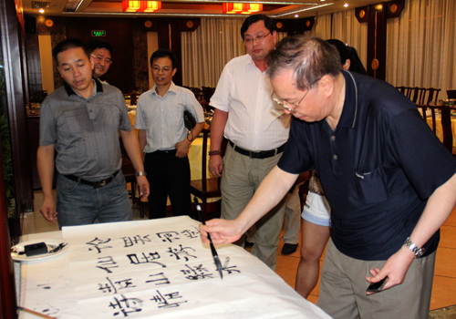 8月30日,会议移师我院进行为期两天的文化交流。交流会由我院院长杨光宗主持,邓磊副校长代表湖北民族学院致欢迎辞。邓副校长向学者们介绍了仙居恩施独特的生态与人文环境和我院教学科研持续发展的现状,引起了代表们的高度关注和极大兴趣。在恩施本土巴楚文化与传统词学经典的交流碰撞中,现场气氛热烈,高潮迭生。来自台湾成功大学的王伟勇教授以闽南语吟唱宋词经典,韩国高丽大学校国际语学院金鲜老师演唱宋词经典,中国社会科学院刘扬忠教授、陶文鹏研究员、暨南大学邓乔彬教授、南开大学孙克强教授、台湾中央研究院林玫仪研究员等一批权威专家当场挥毫,为大会题词留念。