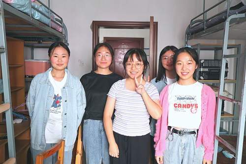 汉语言文学专业新生寝室合影(记者 陈钰婷/摄)
