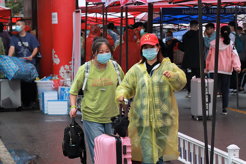 志愿者帮新生拿行李(记者 张贞丽/摄)
