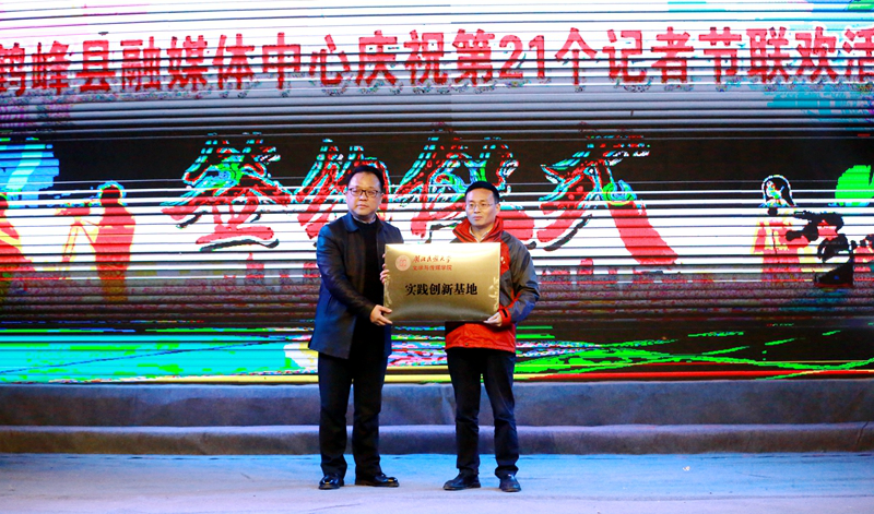 11月8日,我院实习检查队赴鹤峰县融媒体中心进行实习检查。鹤峰县委常委、宣传部长阳如海同志和宣传部副部长、融媒体中心主任李文广对检查组一行表示热烈欢迎。阳如海部长指出我院与鹤峰县融媒体中心的合作,是校地合作模式的有益尝试,为融媒体中心建设带来新的发展契机,注入新的理论和人才力量。当晚,鹤峰县庆祝第21个记者节联欢活动在邬阳乡举行,罗翔宇院长与鹤峰县委宣传部副部长、融媒体中心主任李文广现场签订融媒体建设技术研发与人才孵化合作项目,并授牌“365电子娱乐官方网站文学与传媒学院实践创新基地”“365电子娱乐官方网站文学与传媒学院实习就业基地”。