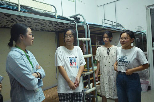史若兰学姐与学妹进行亲切交流,她热情地了解新生的籍贯和爱好,并分享自己初入大学校园的感受与经验。当被问到如何成功入党时,史若兰阐述到不能违纪挂科,要尽可能提高自己的专业绩点,兼顾工作与学习,成为品学兼优的学生。