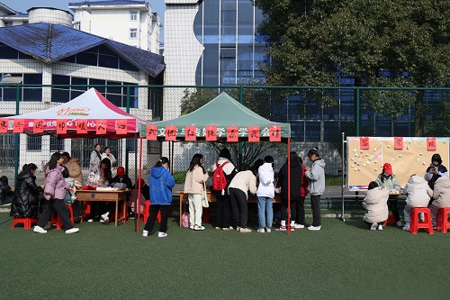 活动现场布置帐篷若干,分别设有“暖心围巾”“热忱书签”和“祝福手绳”三个环节。活动种类丰富,趣味盎然,充分调动现场学生的热情和积极性。