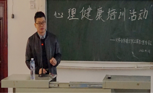 本网讯(记者 程希 李美昊 吴宏铭/文 吴满意/图)4月21日,我院在文传楼附101教室开展心理健康知识讲座。我院心理委员、公寓委员及寝室长参加此次讲座,湖北省心理学会理事、恩施州心理咨询师协会会长、学校心理健康教育中心老师邹松担任主讲人。