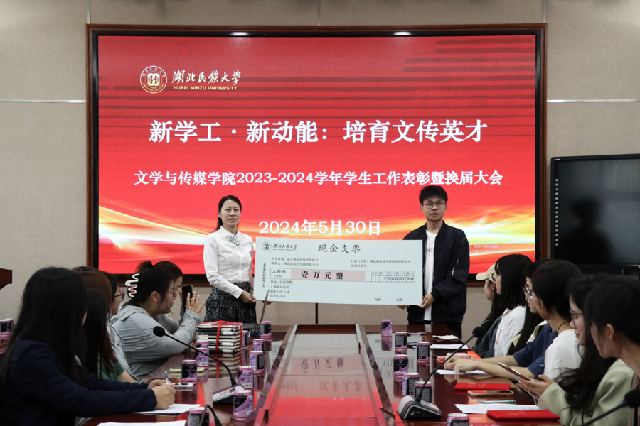 “朝硒相伴”创新创业团队领衔者,湖北硒克优生物科技有限公司法人代表邓正锋同学向文学与传媒学院捐赠了其在前期比赛中所荣获的奖金共计壹万元人民币。同时,邓正锋还倡议并设立了“硒望基金”,旨在通过此举进一步回馈社会,推动教育事业的发展。为了充实“硒望基金”的资金池,邓正锋计划后续招募义卖达人,通过义卖活动筹集善款。这些资金将专项用于支持学生的创新创业项目,同时还将用于资助家庭困难的学生,帮助他们顺利完成学业。邓正锋及其团队一直以来都致力于乡村教育的改善与发展,希望通过他们的努力,能够为更多乡村学子带去知识与希望,为乡村教育的振兴贡献自己的一份力量。