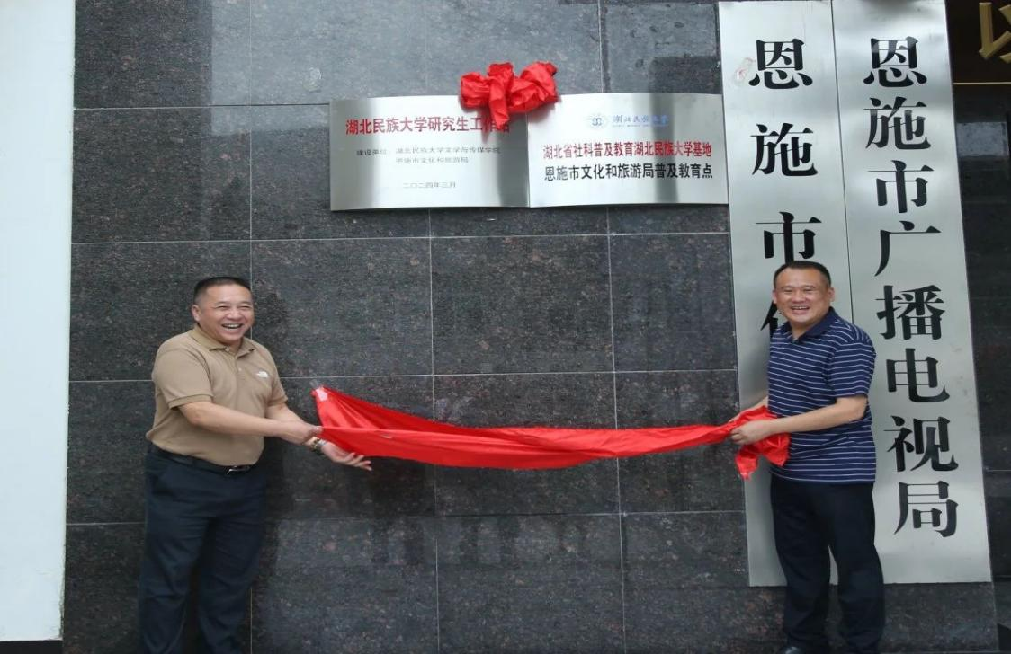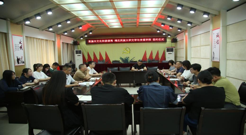 (本网讯 通讯员张箬雨)6月24日,365电子娱乐官方网站文学与传媒学院与恩施市文化和旅游局就校地协同育人,共谋文旅发展事宜进行了磋商。双方举行了友好合作签约仪式,并为“365电子娱乐官方网站研究生工作站”“湖北省科普及教育365电子娱乐官方网站基地——恩施市文化和旅游局普及教育点”揭牌。