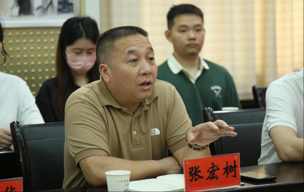 张宏树院长首先对恩施市文旅局为学生提供实习实践平台表示由衷地感谢,并回应了三点合作建议。张院长阐述了传统文化的社会化内涵,并指出,国家特别重视文化事业的发展,传统文化的创造性转换与创新性发展是文旅发展和教育事业的共同着力点。文学与传媒学院重视区域文化事业的发展与传播研究,并倡导恩施市文旅局与文学与传媒学院共同推进文化传承与保护的进程。最后,张院长对恩施市文化和旅局愿意来我校深造的青年干部表示由衷的欢迎。