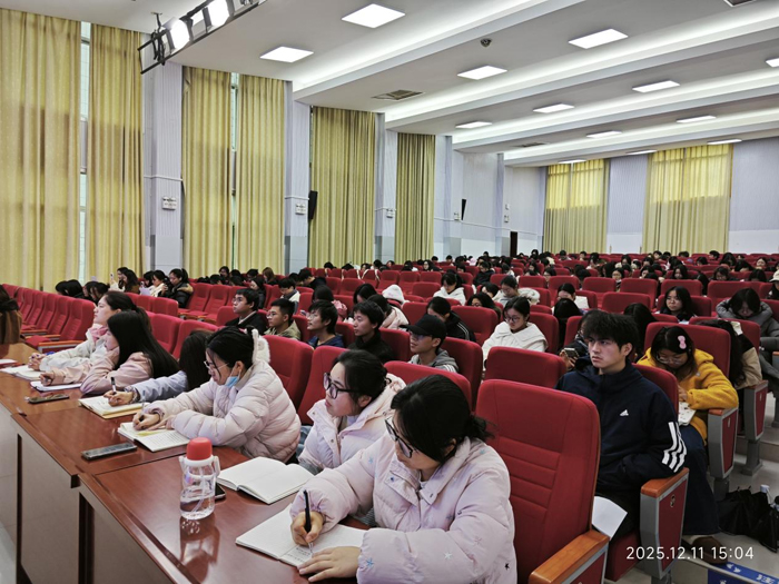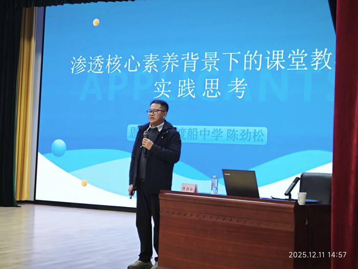 (本网讯 文/蒋林君 图/王思云)2025年12月11日,文学与传媒学院"名师进校园"系列讲座第四期在行政楼一号会议室开讲。恩施市小渡船中学校长陈劲松应邀作《核心素养视域下的课堂教学重构》专题报告,学院副院长江佳慧主持活动,百余名师生现场聆听。