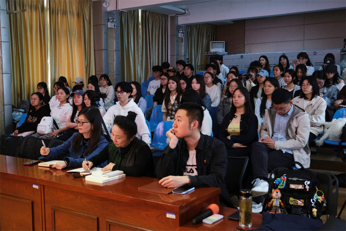 在互动交流环节,现场气氛热烈。同学们不再仅仅是讲座的聆听者,而是以 “准非遗传播者”的身份,围绕非遗传承困境、非遗的现代性转化、青年受众触达痛点等议题踊跃提问。谭学聪老师结合多年实践,给出了极具实战价值的回应,并寄语青年学子:“遇到困难不要轻言放弃,坚持下去,前方总会迎来曙光!希望大家心怀热爱,用专业所长去讲好非遗故事,成为新时代非遗的传播者和守护者。”