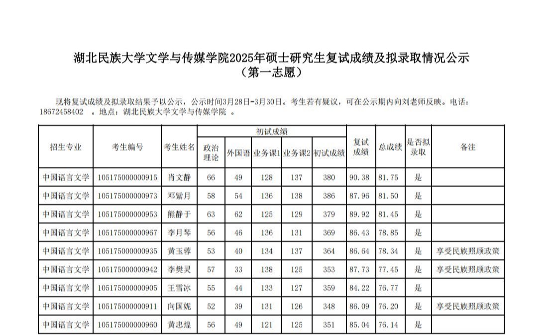 365电子娱乐官方网站文学与传媒学院2025年硕士研究生复试成绩及拟录取情况公示(第一志愿)