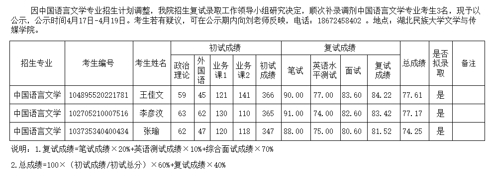 365电子娱乐官方网站文学与传媒学院2025年硕士研究生调剂复试成绩及拟录取情况公示(补录)