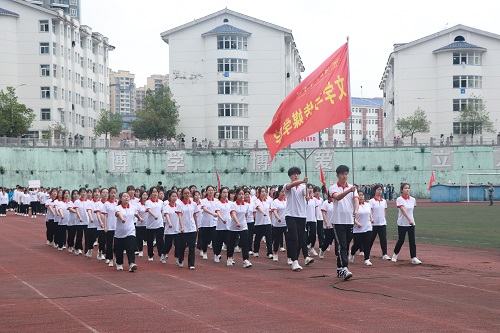 我院学子参加开幕式方阵(记者 王安蓓/摄)