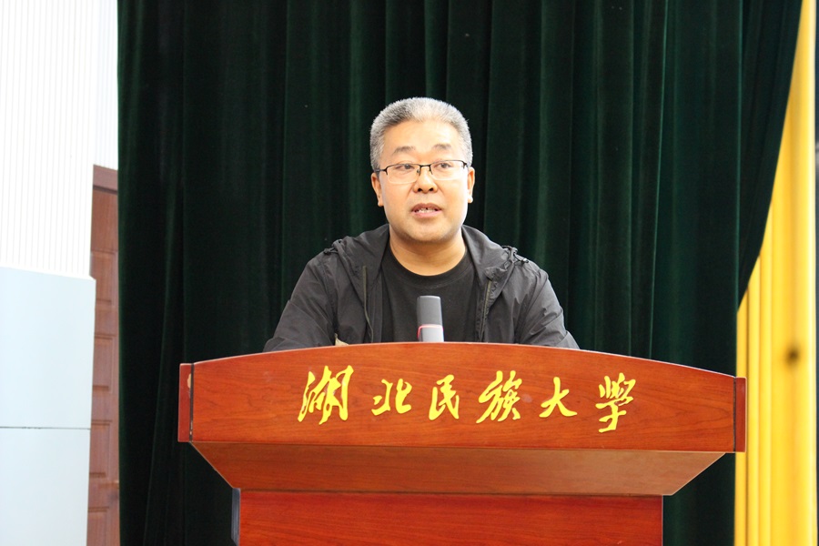 陈梦熊以自身在我院数十年的学习与从教经历为切入点,介绍我院汉语言文学专业毕业生的就业去向,鼓舞学生把汉语言文学专业当作获取知识的材料库,广泛阅读并自主探索发展方向。他提到,古代文学是汉语言专业课程中学习时间最长的连续性课程,提倡学生结合多个工具类课程夯实基础,利用跨学科知识拓展形成立体化、全景式的文学史认知。随后,他要求学生摒弃模板化写作思维,深入研读传统经典,丰盈自身精神空间。