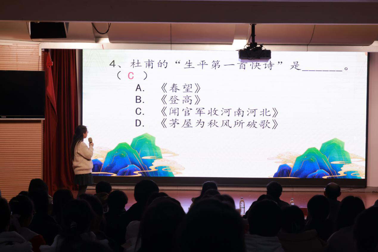 据悉,本次比赛旨在搭建诗词文化展示与交流平台,激发学生对古典诗词的热爱,助力其成长为传统文化的传承者与传播者。同时,有效锻炼学生逻辑思维、提升审美水平,帮助学生在诗词中汲取灵感、增强文学素养,以从容心态和积极态度面对学习与生活。(责任编辑:廖红娟 王修皓 审核:赵宇 李御娇)