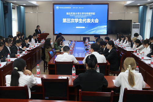 2023-04-25本网讯(记者 王玉然 王燕红)4月22日,我院在文传楼智慧教室(一)召开第三次学生代表大会。院党委副书记李御娇,团总支书记穆小雪,学生科老师王修皓、谭芸及各学生代表参会。开幕式上,全体奏唱国歌。穆小雪代表学院团总支致贺词。会议现场(记者 张熠璠/摄)校学生会主席华雨萱发言。她就“坚持...