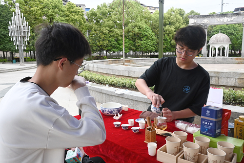 2023-04-26本网讯(记者 王仁茜/文 杨清密/图)4月22日,茶文化协会在大学生广场举办以“一盏清茗酬知音”为主题的全民饮茶特色活动。参与者观赏茶艺表演现场设置展棚若干。活动共分为茶艺表演、茶叶品鉴与展示、游戏互动三个部分。茶艺表演部分,表演者凝心聚气,动作干脆利落、行云流水,并将所泡茶水分享给...
