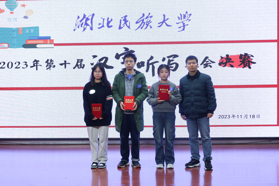 2023-11-23本网讯(记者 吴雯茜/文 记者 张熠璠 通讯员 韩汶余/图)11月18日,文学与传媒学院在文传演播厅举办以“书中华汉字,传华夏文明”为主题的第九届汉字听写大会决赛。文学与传媒学院中文系教师向亮、陈云豪、赵修,研究生唐琳、郑红艳应邀出席并担任评委。向亮为一等奖获得者颁奖经过初赛和复赛的激烈...