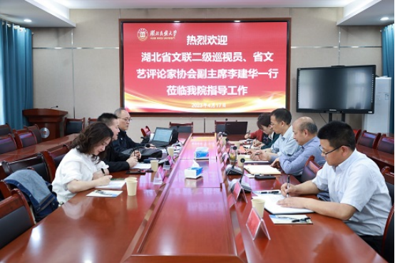 2023-04-20本网讯(记者 文字/吕卓颖 王玉然 章文轩/摄)4月17日,湖北省文艺评论基地调研会在我院举行,湖北省文联二级巡视员,湖北省文艺评论家协会常务副主席,《长江文艺评论》执行主编李建华、湖北省文艺评论家协会秘书长高翔,湖北省文艺评论家协会副秘书长李宗荟一行莅临我院,我院院长杨光宗...