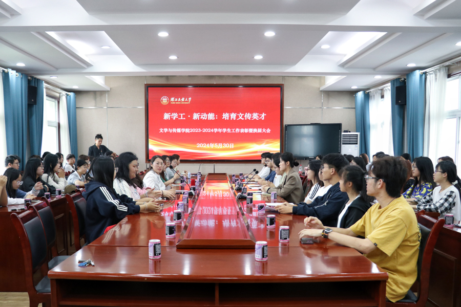 2024-06-16本网讯(记者 钟慧敏/文 记者 朱晨蔚/图)文学与传媒学院于5月30日在智慧教室一隆重举行“新学工·新动能”启动仪式,这场盛典不仅是对2023至2024学年度学生工作的总结与表彰,更是对未来一年学院学生工作新方向的规划与展望。学院党委副书记李御娇,团总支书记穆小雪,学生党支部书记谭芸出席本次大...