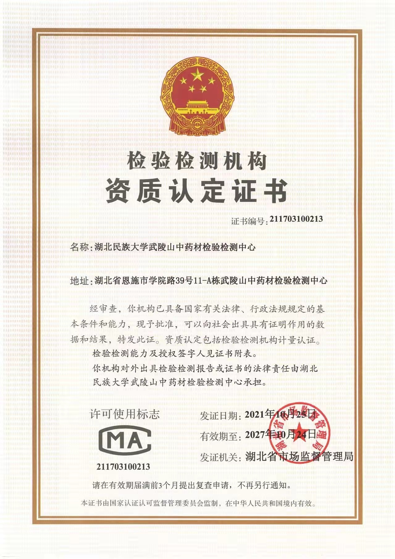 武陵山中药材检验检测中心通过CNAS认证