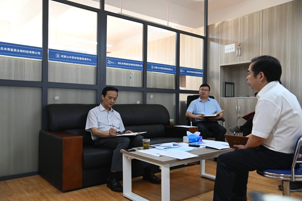 本网讯 (通讯员 陈佐会) 7月20日,学校党委书记向前进来武陵山中药材检验检测中心(以下简称检测中心)调研。向前进实地逐间查看了检验检测室,仔细了解了各实验室及仪器设备功能,现场检查了检验检测流程和易制毒、易制爆试剂及危化物品的安全存放措施。