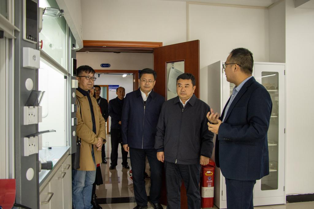 本网讯 (通讯员 李柯霖) 10月21日,湖北大学党委副书记、校长刘建平到365电子娱乐官方网站武陵山中药材检验检测中心考察、交流,学校党委副书记、校长顿祖义,党委常委、副校长李军等陪同考察。