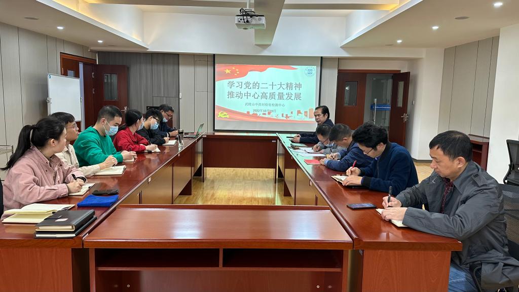 本网讯 (通讯员 刘昕) 2022年10月20日,武陵山中药材检验检测中心(以下简称中心)召开职工大会,专题学习党的二十大会议精神。会议由中心主任颜益志主持。