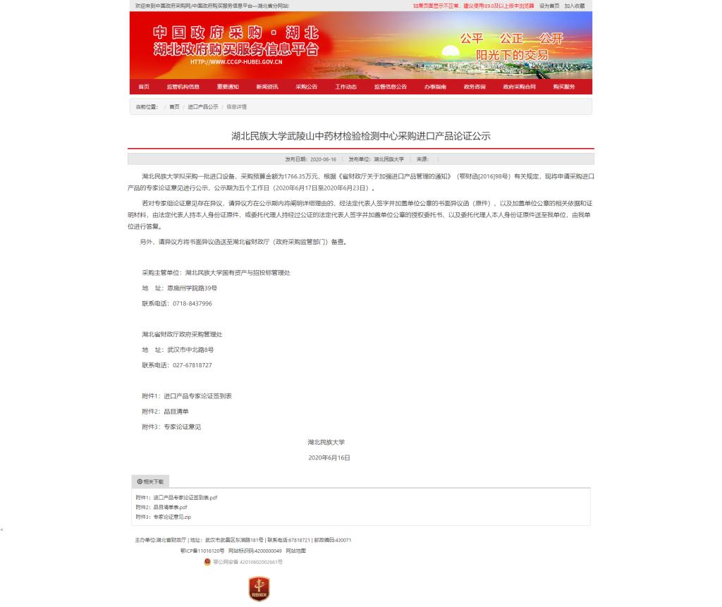365电子娱乐官方网站武陵山中药材检验检测中心采购进口产品论证公示