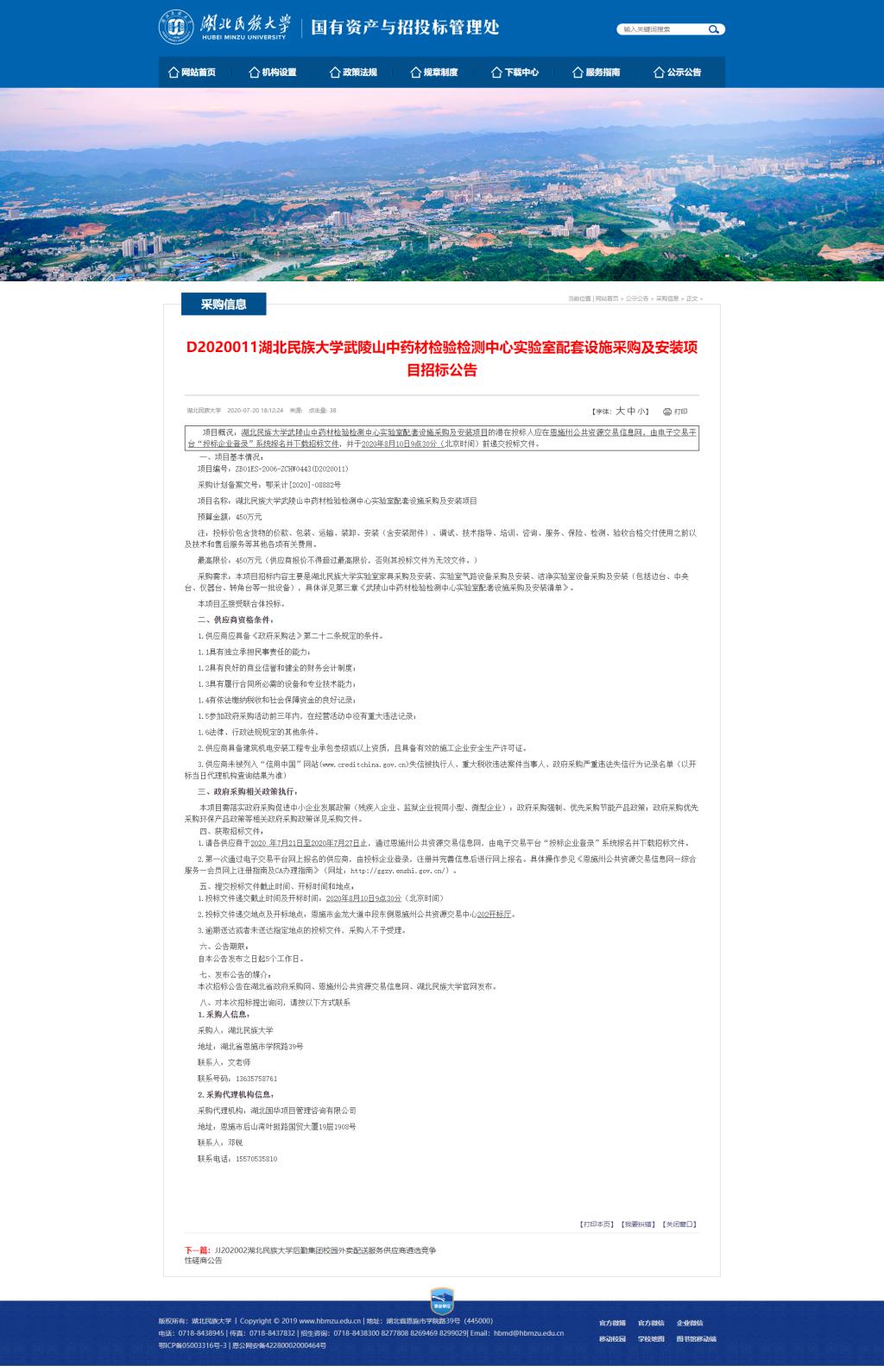 365电子娱乐官方网站武陵山中药材检验检测中心实验室配套设施采购及安装项目招标公告