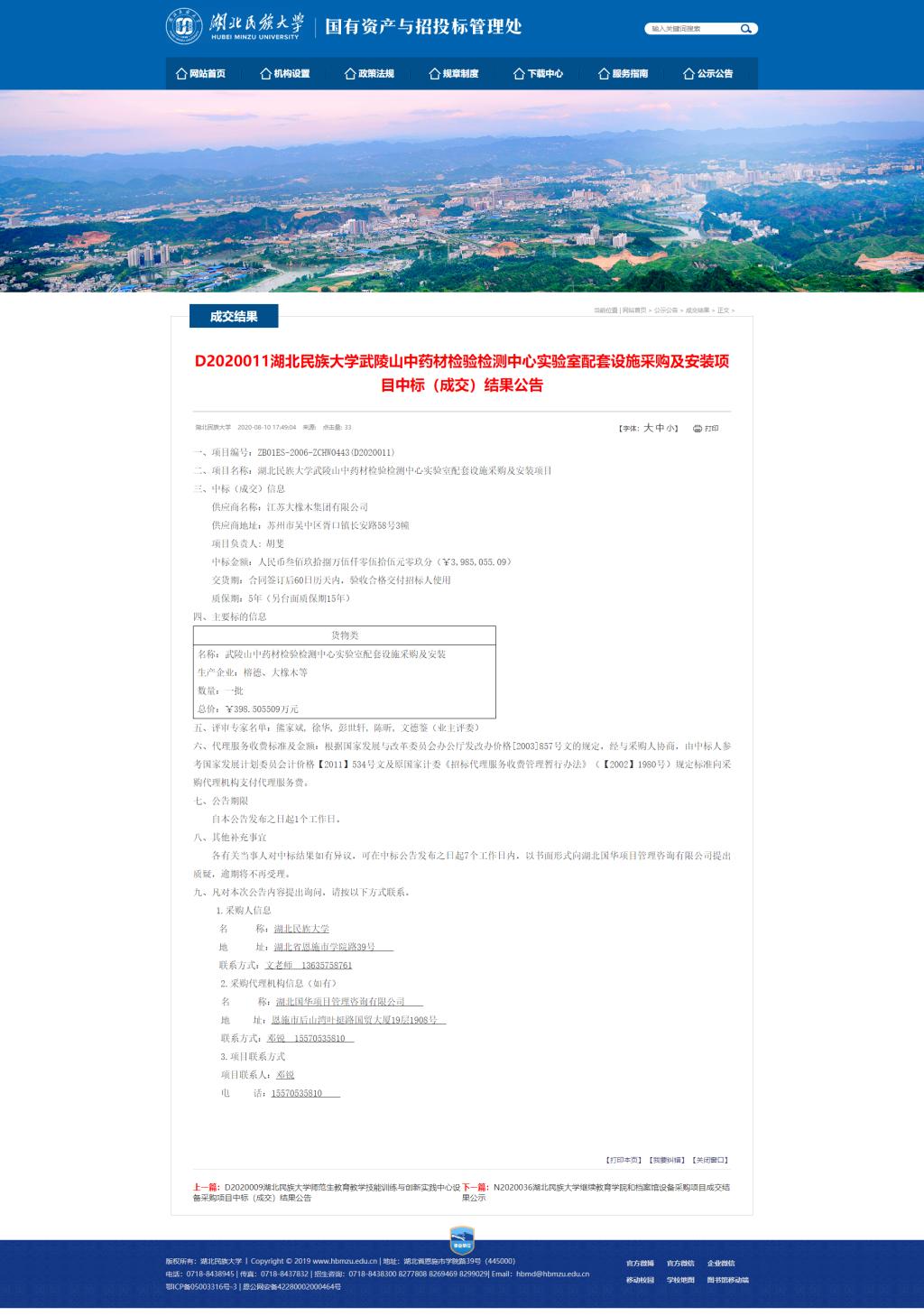 365电子娱乐官方网站武陵山中药材检验检测中心实验室配套设施采购及安装项目中标(成交)结果公告