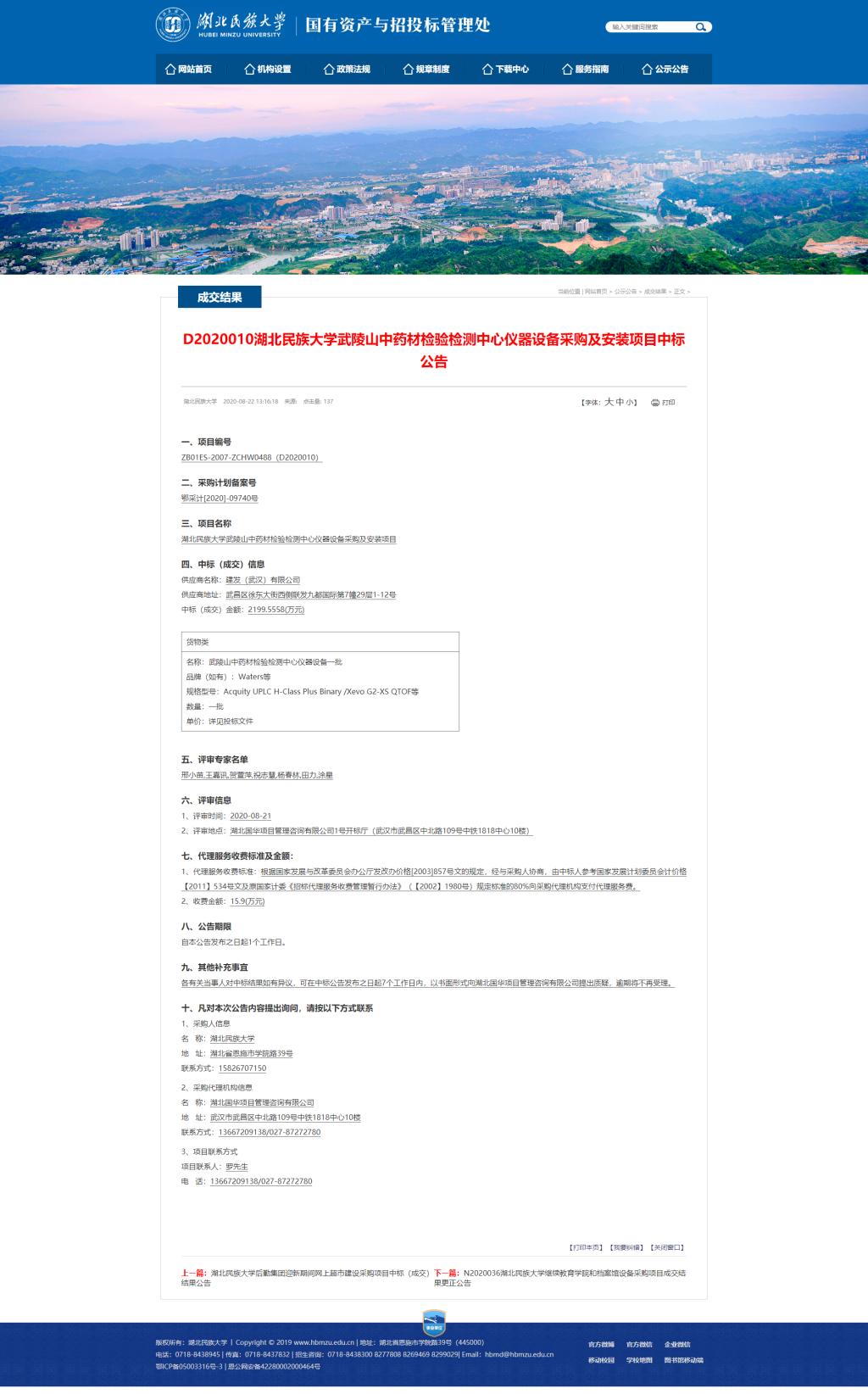 365电子娱乐官方网站武陵山中药材检验检测中心仪器设备采购及安装项目中标公告